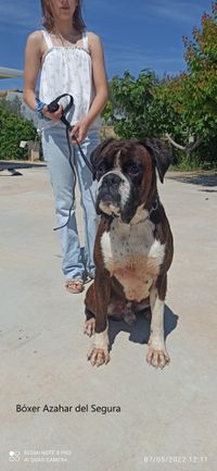 Por otro lado, su bisabuela materna es nuestra Ch. Felicien de la Finca Sapho, la matriarca de Bóxer Azahar del Segura.